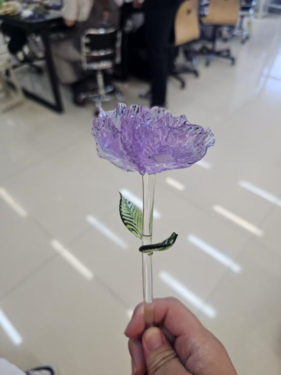 志愿者们选用长玻璃棒,使其在手中灵巧转动,让琉璃在热力中逐渐呈现形态;接着用镊子细致修整边角,再经退火窑缓慢降温,一件琉璃作品便初具雏形。让我们敬佩那些非遗传承人的坚守,他们年复一年打磨技艺,只为让古老文化延续。慢慢掌握节奏后,志愿者开始发挥创意,给琉璃添加造型。火焰跳动间,琉璃不断变化,每一次调整,都像是与这千年技艺对话。周围伙伴们也专注投入琉璃的制作。