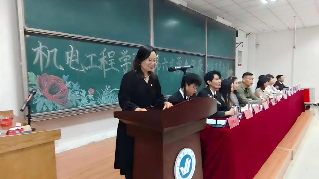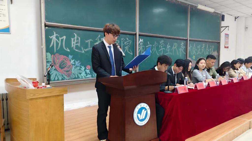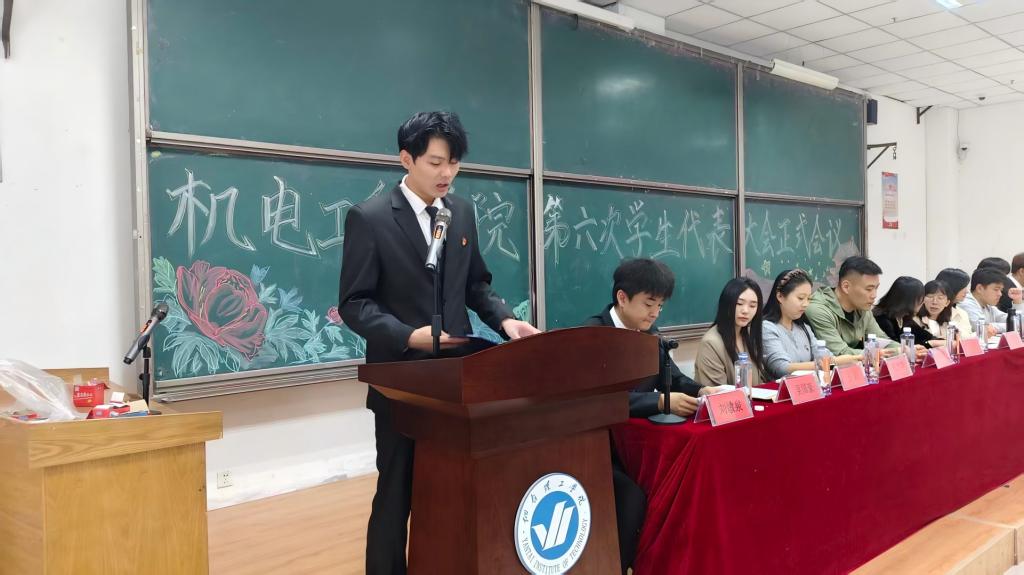 10月15日,机电工程学院于二教115教室顺利召开了第六届学生代表大会。大会审议并通过了机电工程学院学生会工作报告,选举产生了新一届主席团成员。参与此次会议的人员有党总支副书记王晓黎、团总支书记韩聪聪、全体辅导员以及学生会主席团和学生干部,会议由学生刘敏泉主持。