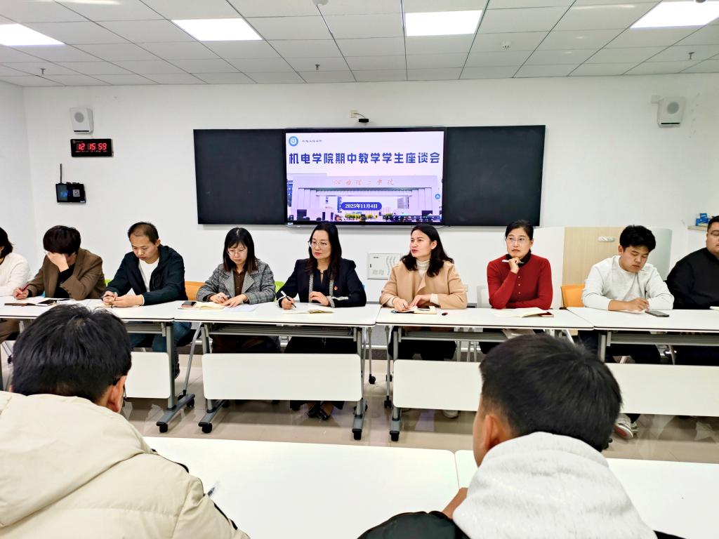 为精准掌握学情动态,畅通师生沟通渠道,切实解决学生在学习与生活中的实际困惑,11月4日,机电工程学院于三教S203智慧教室开展期中教学学生座谈会。此次会议由团总支书记韩聪聪主持,机电工程学院党总支副书记王晓黎,副院长王亚平,院长助理于洋,智能制造系主任刘长友,机械设计制造及其自动化系主任单瑞霞、智能制造系副主任袁港,教务员张丽伟、教学秘书张丽华,辅导员李亮、杜泽辉及各年级学生代表参加。