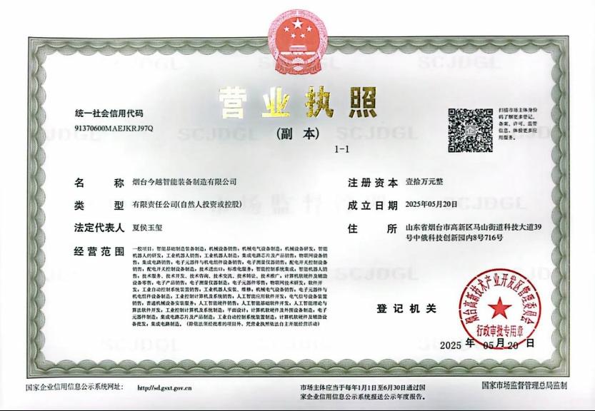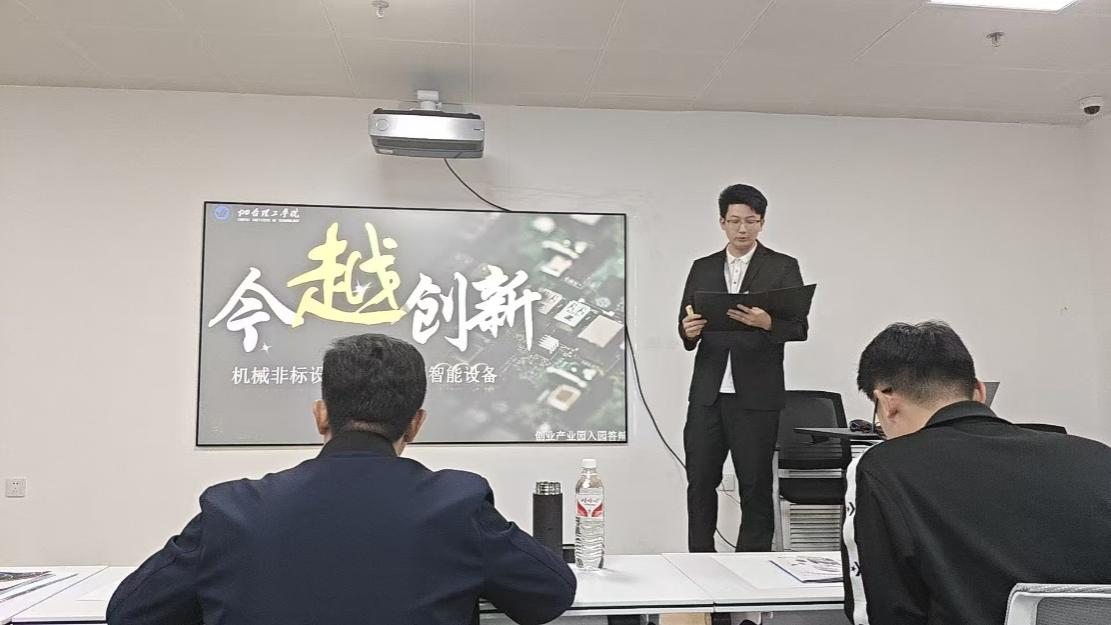 临近毕业,站在学业与事业的衔接节点,夏侯玉玺做出了一个坚定的选择——带领曾经并肩作战的团队,以创业为载体,延续心中的科创理想。依托学院创业孵化园区的政策扶持、场地支持与导师资源,他整合四年积累的技术成果与项目经验,注册成立自动化设计公司——今越智能装备制造有限公司,专注于工业自动化设备定制化研发,以 “立足当下,超越未来” 的企业寓意,开启了科创落地的新征程。
