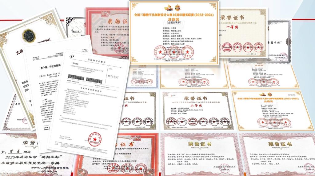 凭借扎实的技术积累,夏侯玉玺从大一下学期便主动投身各类学科竞赛的竞技场。在学院导师的专业指导与自身坚韧毅力的支撑下,他率先斩获机电大赛二等奖、精英联赛二等奖等多项荣誉。升入大二后,他进一步聚焦行业实际痛点,带领团队攻坚克难,相继研发出植物萃取自动化设备、灾后智能救援车等多项创新成果,在“互联网 +” 大学生创新创业大赛、全国3D大赛等赛事中脱颖而出,以实打实的成绩印证了 “勤能补拙、研能精进” 的深刻道理。