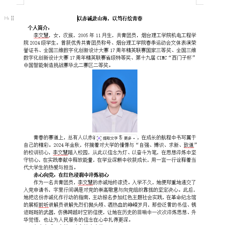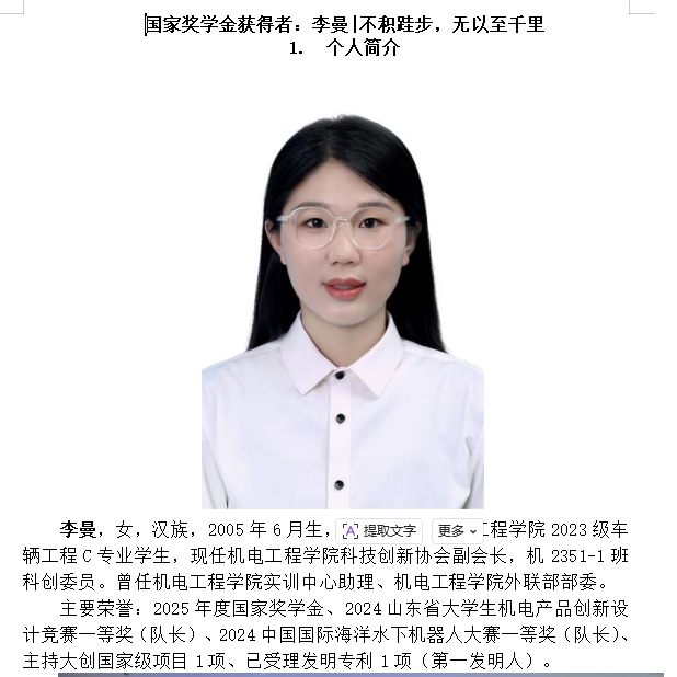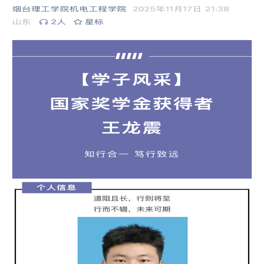 (机电工程学院优秀学子——个人简介展示)