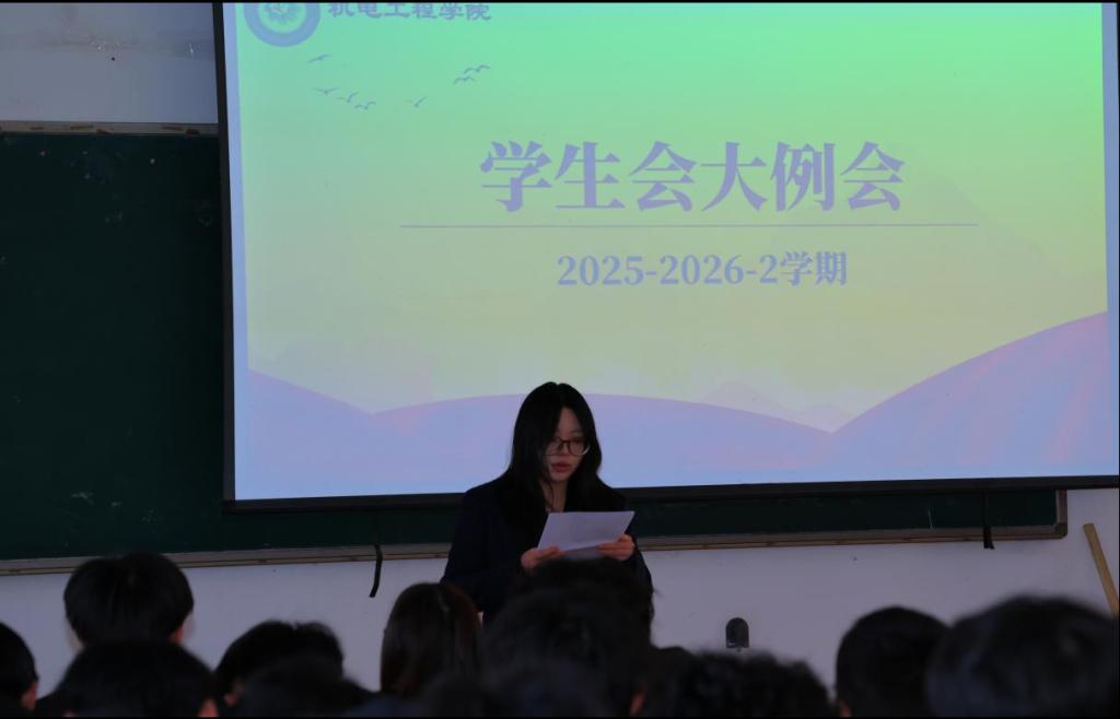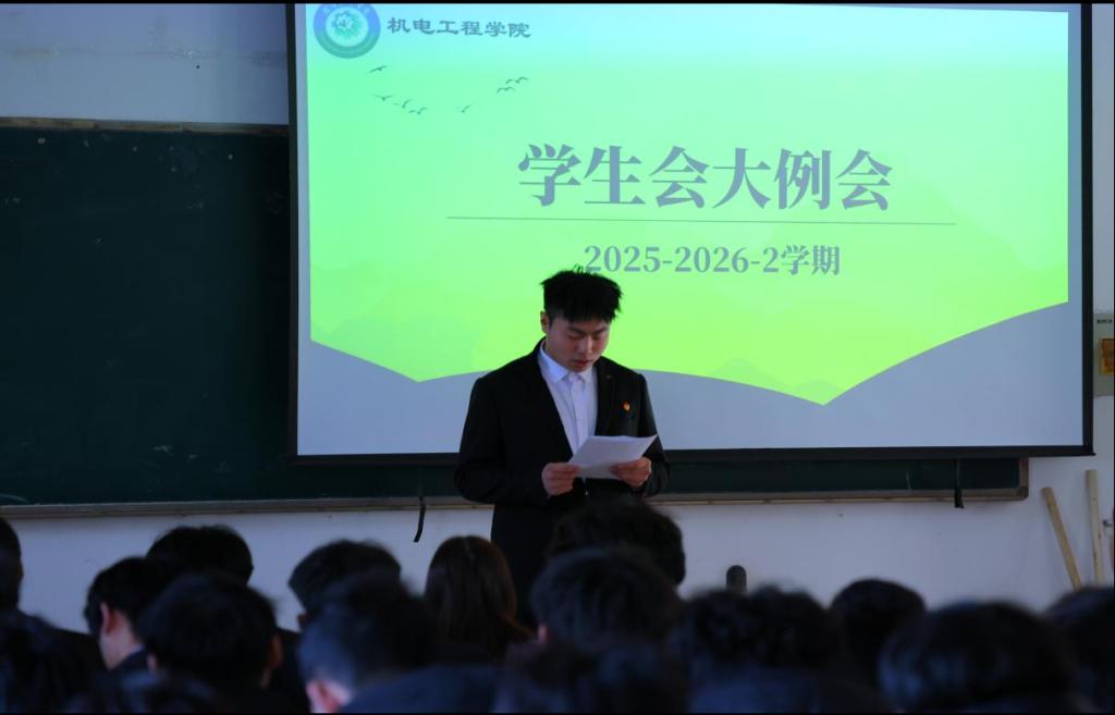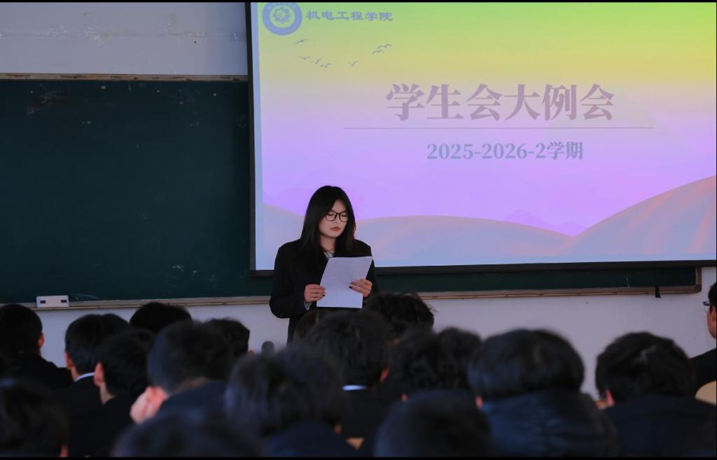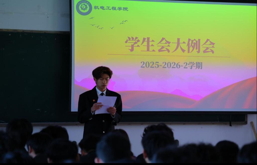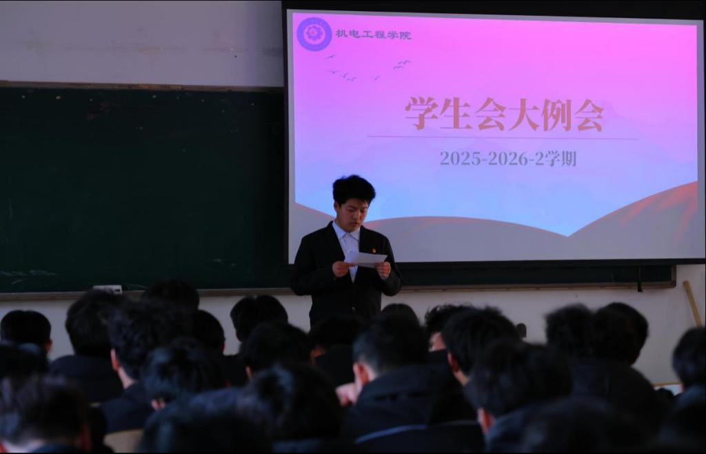 为进一步统筹新学期学生工作,凝聚学生干部力量,明确后续工作方向。近日,机电工程学院于一教116召开2025-2026-2学期学生干部例会。本次会议由封少俊主持,机电工程学院团总支书记韩聪聪、学生会主席团及全体学生干部参与。