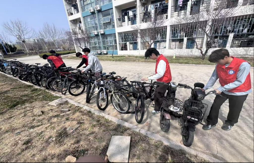 在校内停车区域,同学们对乱停乱放的自行车进行统一规整,将车辆逐一扶正、对齐、摆放整齐,及时疏通拥堵路段,消除安全隐患,让停车区域井然有序。规范停放不仅美化了校园环境,更引导大家养成文明出行、自觉守序的良好习惯,将文明意识内化于心、外化于行,以小秩序涵养大文明。