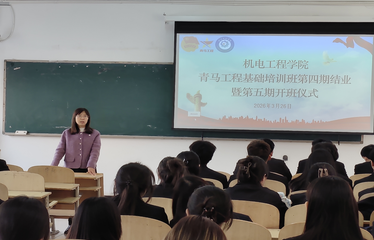 为激励广大青年学子坚定理想信念、勇担时代使命,进一步提升青年骨干的理论素养与实践能力,近日,机电工程学院青马工程基础培训班第四期结业暨第五期开班仪式于一教116顺利举行。团总支书记韩聪聪,团总支学生副书记武若凡、梅雨婷及青马工程第四期与第五期全体学员出席会议,秘书处邹鑫博主持仪式。会议伊始,全体学员起立奏唱国歌,仪式在庄严的氛围中正式拉开帷幕。主持人邹鑫博介绍第四期青马工程基础培训班开展情况,总结系列学习实践活动,并祝贺全体学员顺利结业。随后,韩老师为第四期合格结业学员颁发荣誉证书。