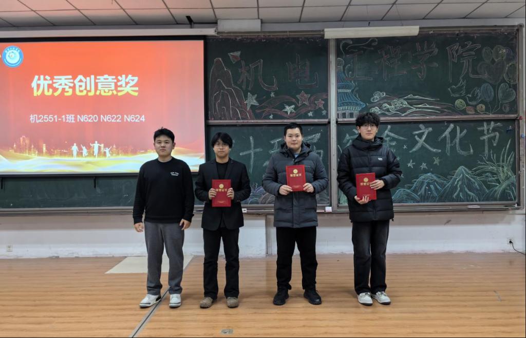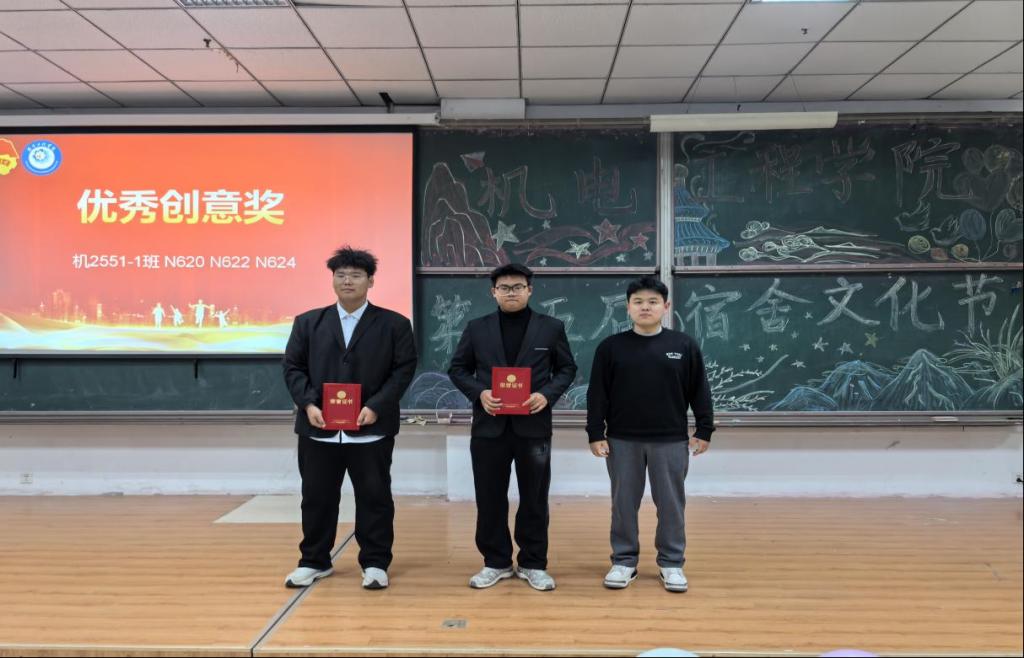 表彰环节成为全场焦点,辅导员杜泽辉为获奖班级颁奖,获“示范先锋班”奖项的是:机2507-1、机2507-2;获“文明示范宿舍”奖项的是:机2501-2班N510、N512,机2351-1班N620;获“优秀创意”奖项的是:机2551-1班N620、N622、N624。