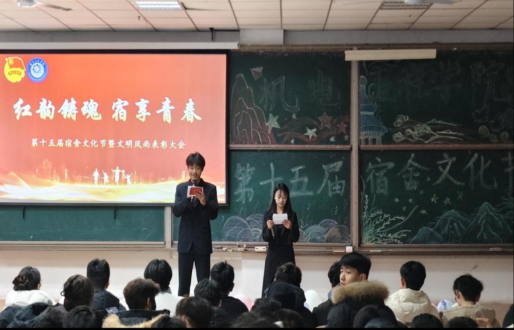 机电工程学院“红韵铸魂,宿享青春”第十五届宿舍文化节顺利落幕。此次宿舍文化节表彰晚会的举办,不仅丰富了校园文化生活,搭建了师生交流与自我展示的平台,更进一步展示了机电工程学院学子蓬勃向上的精神面貌,为构建和谐校园文化注入了新的活力。